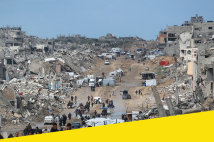 Gaza, where entire neighborhoods lie in ruins and daily life continues amid…