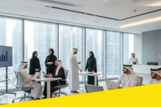 The image reflects a modern corporate setting in the UAE, where professionals…
