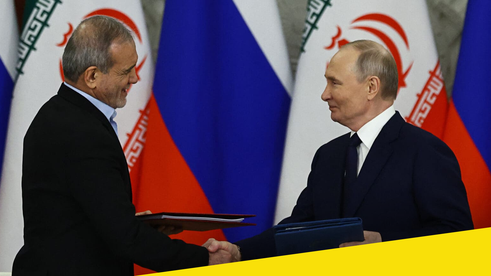 The image above captures a formal diplomatic moment between Russian President Vladimir Putin and a senior Iranian official, set against the backdrop of Russian and Iranian flags. The handshake and exchange of documents symbolize ongoing high-level dialogue at a time when regional tensions particularly involving Iran and the Gulf are drawing increased international attention.