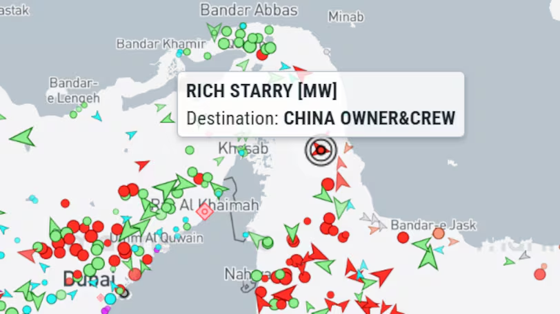 Shipping data showed that the Chinese-owned tanker Rich Starry, previously sanctioned for links to Iranian oil trade, passed through the critical waterway carrying about 250,000 barrels of methanol loaded in the UAE. It became the first sanctioned vessel to exit the Gulf since the blockade began.